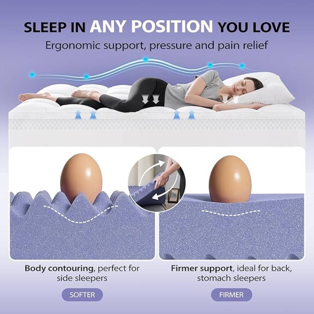 Invest in better sleep tonight with the Egg-Curve Memory Foam Mattress Topper. It’s not just a mattress accessory—it’s a game-changer for your sleep quality, health, and overall well-being.