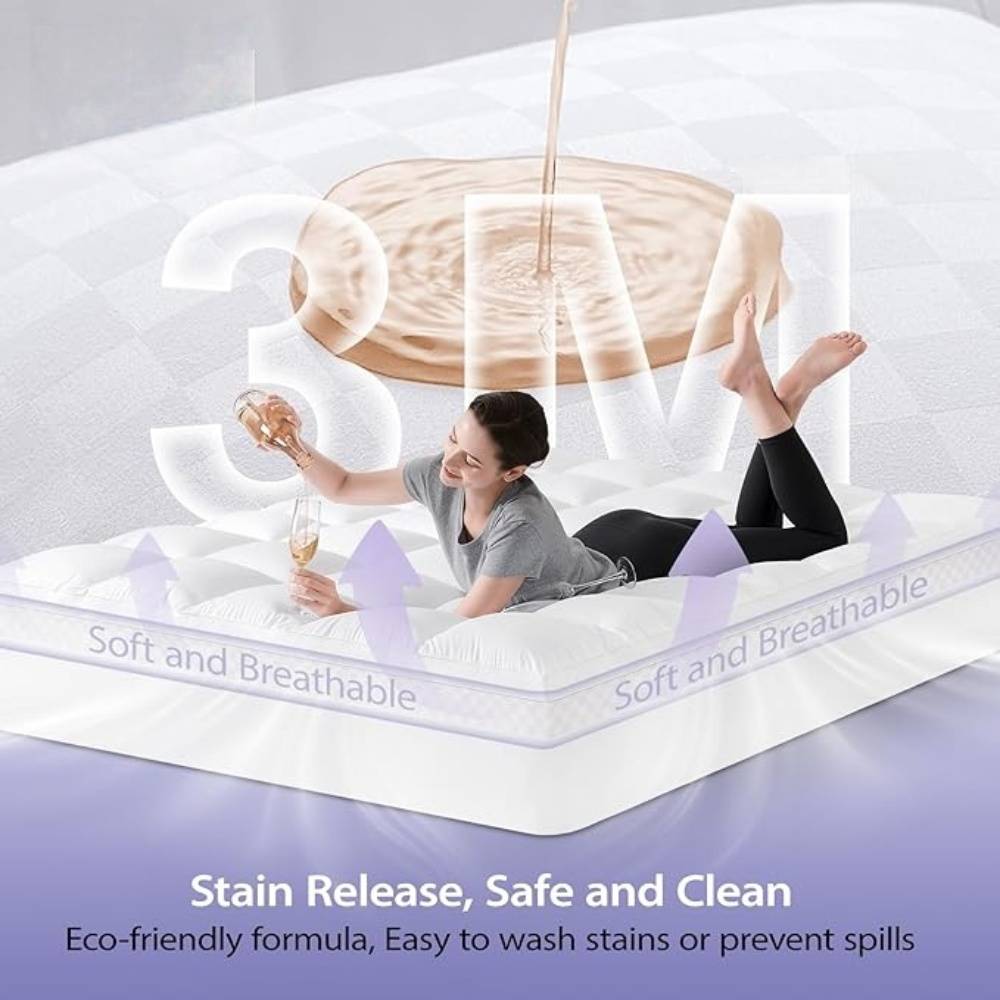 No complicated setup required! The topper comes with elastic straps on all four corners that fit snugly over most mattresses (twin, full, queen, king sizes). It also includes a removable, machine-washable cover made of soft, breathable polyester. Simply zip off the cover, toss it in the washing machine on a gentle cycle, and air dry—keeping your topper fresh and clean has never been easier.